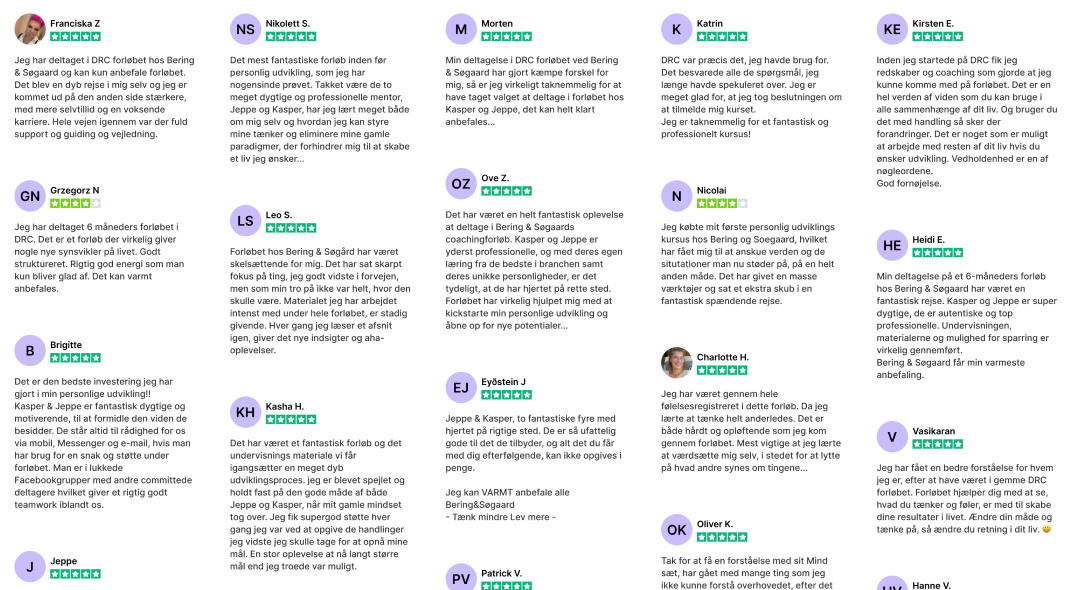 Læs et udsnit af vores kunders oplevelser på Trustpilot, og se, hvordan frihed, fokus og resultater ikke bare er for de få – men for dem, der beslutter sig for at hæve standarden.